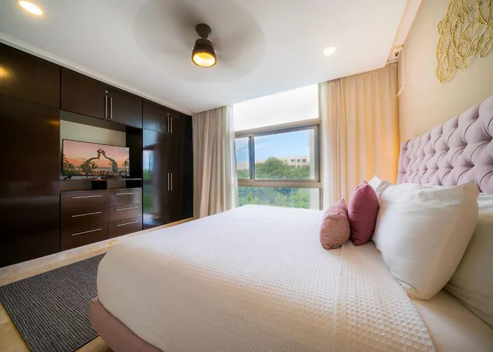 The welcoming 115 m² Luxury 2 Bedroom Condo At Haab, Playa Del Carmen offers easy entry to such city sights as the Xavage Park by Xcaret, situated just a 9-minute walk away. This spacious apartment boasts a golf course, perfect for guests who enjoy staying active.